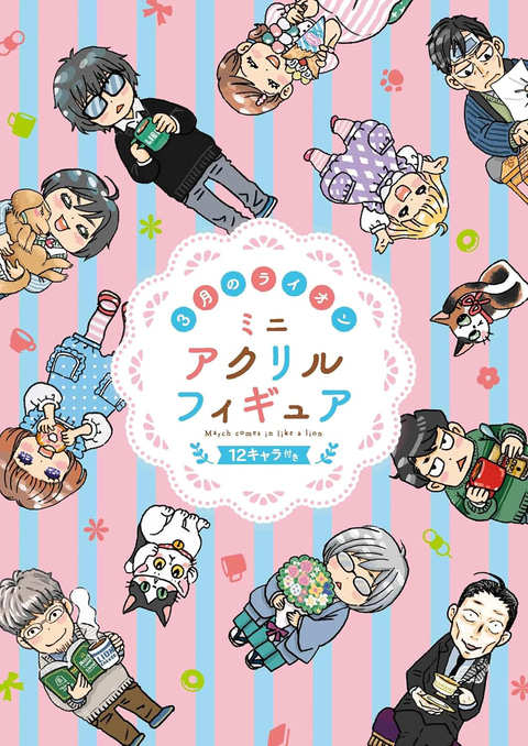 そして特装版の付録はアクリルスタンドフィギュアで、零や川本家3姉妹、島田、二海堂など、12体のキャラクターがデフォルメイラストで描き下ろされている。