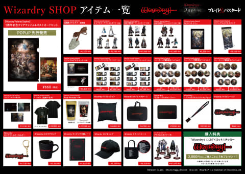 本ポップアップショップでは、「Wizardry」や、「Wizardry Variants Daphne」、「Wizardry」を基にしたライトノベル及び、それを原作としたコミカライズ作品「ブレイド&バスタード」のグッズが販売される。