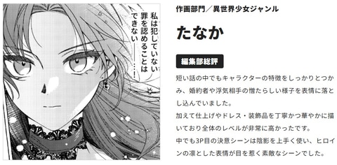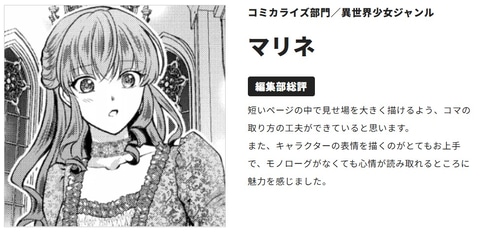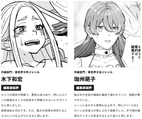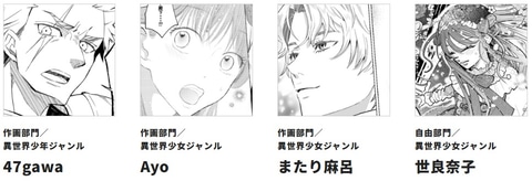 さらに準大賞はコミカライズ部門の蒼天来さんとマリネさんが受賞。そのほか奨励賞には木下和宏さん、珈州葩子さん、期待賞には47gawaさん、Ayoさん、またり麻呂さん、世良奈子さんの名前が挙げられている。