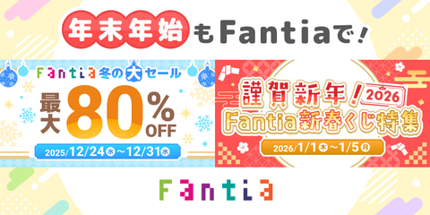 ファンクラブプラットフォーム「Fantia」は、12月末から2026年の年始にかけて、出品商品が最大80%オフになる「Fantia 冬の大セール」と、年始を飾る特別企画「謹賀新年!2026 Fantia新春くじ特集」を開催する。