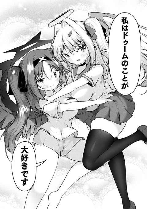 天使×触手×百合の異種混合ガールズバトルがついに完結。アルマとドゥームの描き下ろし初夜も収録されている。