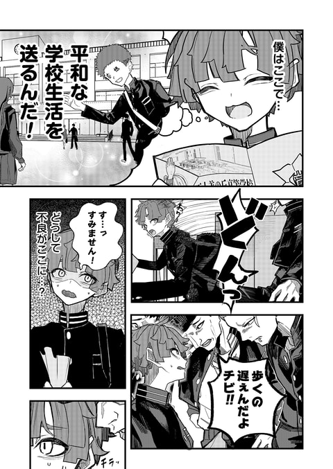 平穏な青春を夢見て上京した元パシリの少年・最上縁。だが願書を出し間違え、入学したのは"関東最悪"の不良高校《不士美高校》だった!雑魚扱いされ不良に絡まれるも、なぜか無意識にぶっ飛ばしてしまう縁。その正体は、伝説の不良チーム〈獄門天〉に育てられた"無自覚"の実力者だった――。「普通の学生生活」を願う最強パシリが、アウトローな日常に巻き込まれながらも青春を掴む、新時代の不良アクション、開幕!