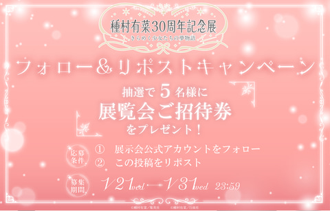 公式Xアカウントをフォローして、該当のポストをリポストした人の中から抽選で5名に本展覧会の招待券が当たるキャンペーンが実施される。開催期間は1月21日から1月31日。