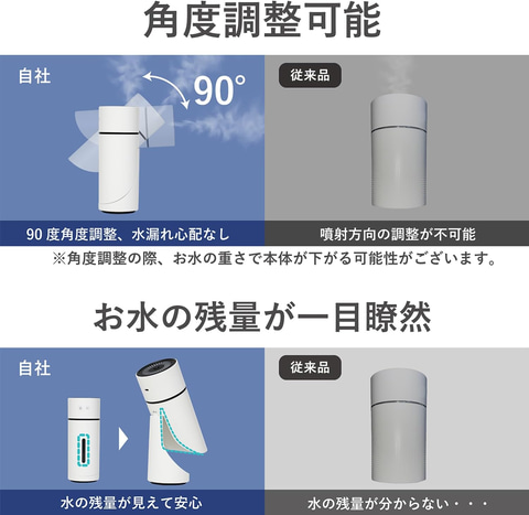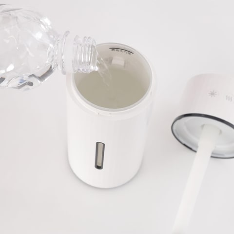 対象となっているのはLopf(ルプ)の小型加湿器。ペットボトルサイズで、角度調整が可能。USB充電が可能で、キャンプや車の中など様々な場所で使用するいことができる。