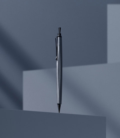 継ぎ目のないボディ(胴軸)は長さ108mm(先金、ノック棒、天冠を除く)。軸径は直径7.7mm、10mm、7.7mmと変化する流線形。軸のほぼ中央は三方向から面取りした三角軸になっており、両端に向かって丸軸に溶け込むエレガントなデザインに仕上がっている。