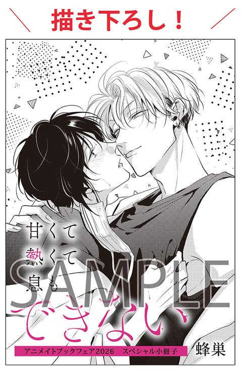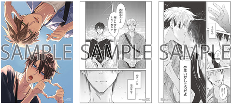 ・B6サイズ8P小冊子「甘くて熱くて息もできない」/「イヤって言ってもきかないで」/「ウケ専ボーイは神テク男子とセフレになりたい!after!」/「美しい彼」/「さんかくトワイライト」/「職場のイケメン営業は理想の飼い主様」/「どうしようもなく愛してよ」/「舐めて、噛んで、キスをして」/「春に凪ぐ青」/「BLゲームの主人公の弟であることに気がつきました」