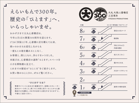また、300周年を記念した大丸心斎橋店のロゴは、時空を超える存在であるマンガ「火の鳥」をモチーフに作成。過去と未来を象徴するマークを配置し、長年絶えず愛され続ける店をイメージしている。
