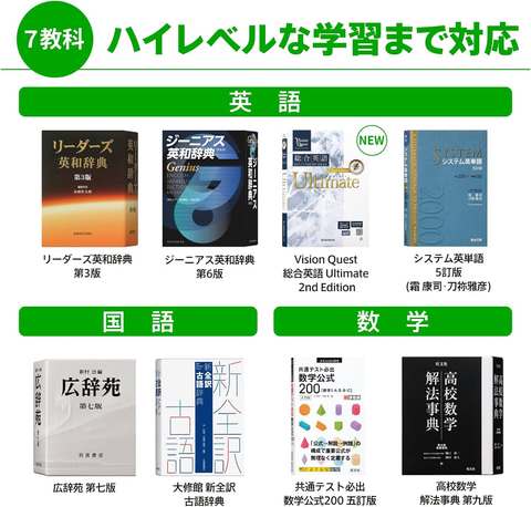 対象となっているのは、カシオの電子辞書「エクスワード」の高校生向け、英語・国語強化モデル。ハイレベルな英語学習や、難関大合格に向けた高校学習7教科をサポートする。