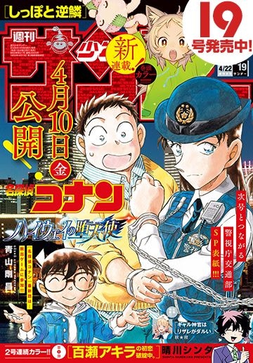 今号の表紙には、2号連続つながる表紙の第1弾として青山剛昌氏の「名探偵コナン」が登場。4月10日には劇場版「名探偵コナン」最新作となる「名探偵コナン ハイウェイの堕天使」も公開予定となっている。