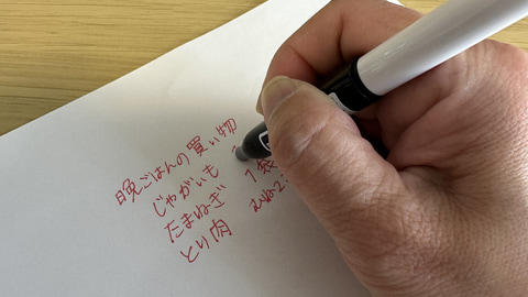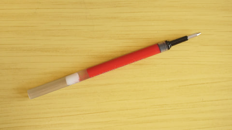 書き心地は滑らかでスムーズ。ボール径が大きいので、細かい文字を書くよりも、大きな文字をのびのび書くのに向いていそうだ。細かい粒子の顔料インクなので、使っているうちに先端にインクの被膜がこびりつくことがある。そのまま使っても書くことの邪魔にはならないものの、時々先端を拭き取る必要はありそうだ。