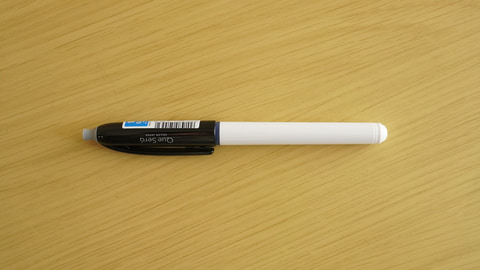 まずは見た目から紹介していきたい。軸は白、キャップは黒。軸とキャップの隙間からはインクの色と同じグリップ部分が一部見えるので、それで何色のペンなのかが分かるようになっている。