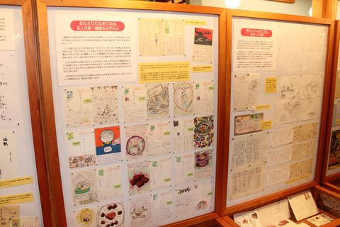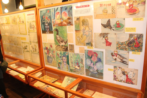 展示室第2室では、仕事の絵だけでなく子供たちのために描いた絵や、自身の趣味で取り組まれた作品、心を込めて書いた手紙などの、人柄が感じられる多数の絵などが紹介されている。なかでも友人や知人、家族などとやりとりした手紙の多さに驚かされたが、山本百合子さんは手紙や連絡があると、それを“借金が来た”と表現し、早く返さないといけないから即座に手紙での返信が届くんです、と館長の安西さんが解説してくれた。