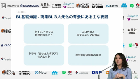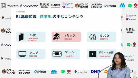このレポートでは、BLに詳しくない人に向けた基礎知識を説明しつつ、セッションで語られたBLの現在地について解説したい。