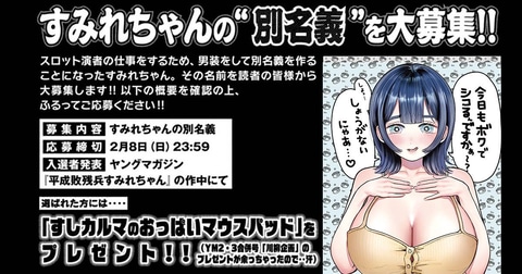 現在同作作中の展開にあわせ、男装するすみれちゃんの「別名義」が2月2日より2月8日にかけて募集されており、採用された名前の応募者には「すしカルマのおっぱいマウスパッド」が贈呈される。このアイテムはかつてヤングマガジン2・3合併号で実施された「川柳企画」の賞品として制作されたもので、今回はその「余っちゃった」分が再び日の目を見ることになる。