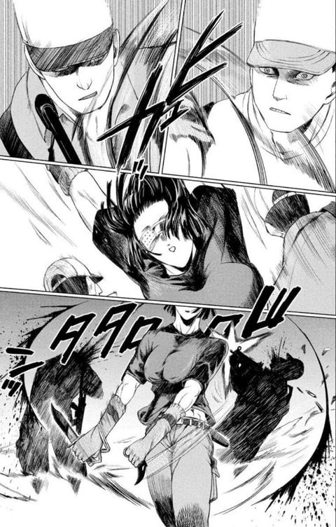 さらに敵として登場するキャラクターたちも魅力的だ。たとえば単行本6巻でココたちが対峙したのは、レストラン経営の夢を語る3人組の殺し屋。気だるげな態度のリーダー・ドミニク、ワイヤーカッターで死体を“ちょん切る”癖がある覆面姿の大男・グレゴワール、剃刀を束ねたようなネックレスをした奇天烈少女・リリアーヌと、あまりにもクセが強い面々だった。