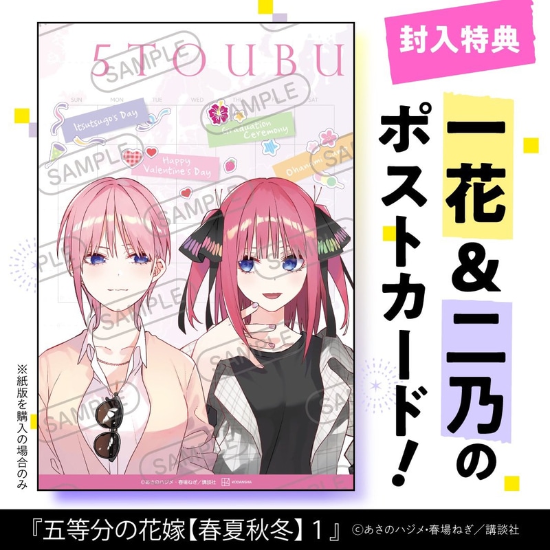 (C)2008-2025 Kodansha Ltd. All Rights Reserved. Amazon/楽天/DMM.comで購入五等分の花嫁【春夏秋冬】(1)Amazonで購入楽天で購入DMM.comで購入