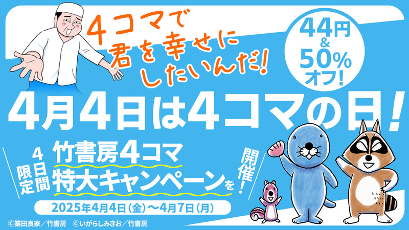 4月4日は4コマの日! 竹書房、4日間限定4コマの日キャンペーン開催