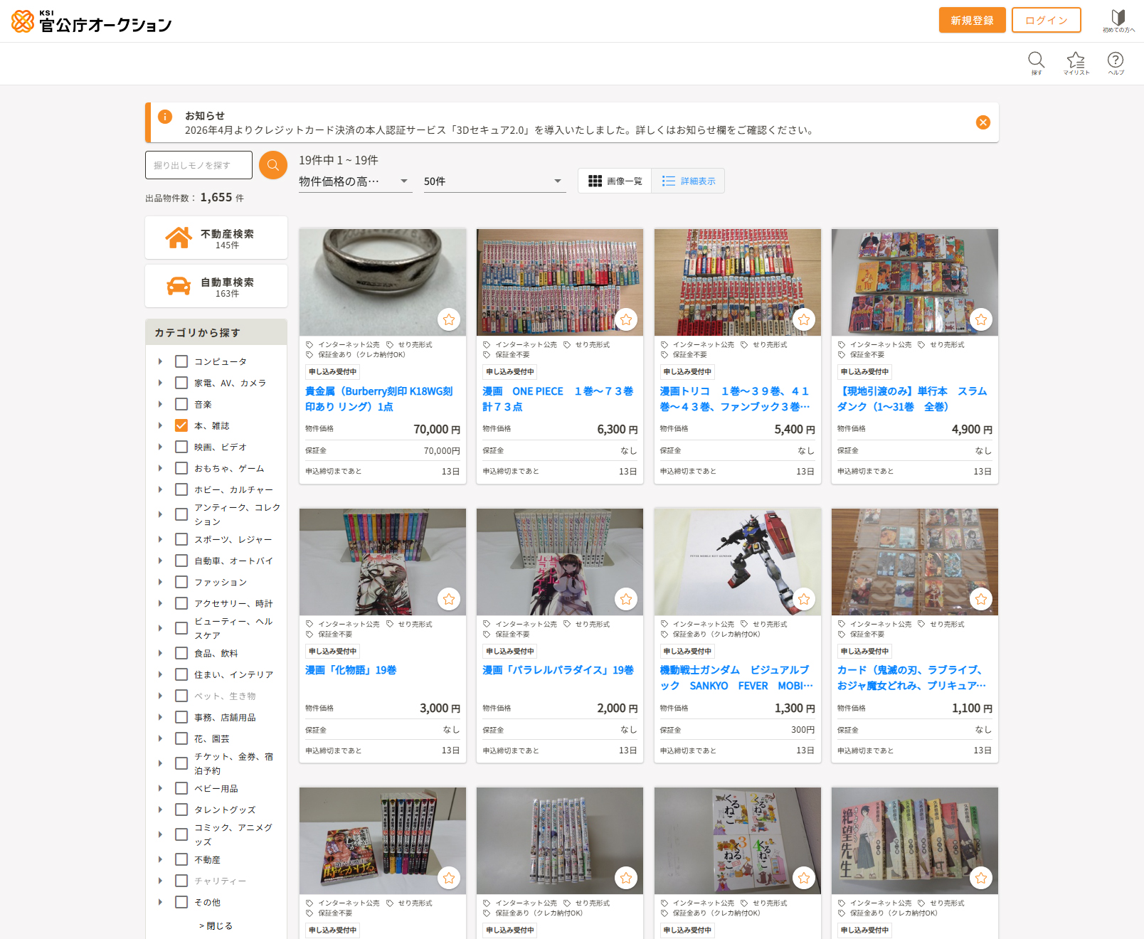 KSI公官庁オークションに「絶望先生」や「くるねこ」など多数のマンガが出品中